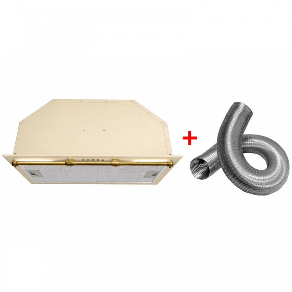 вбудовується в тумбу 60 см, надійне механічне керування LED освітлення, бронзовий рейлінг під класичні кухні, мідний декор, надпотужна турбіна зі спеціальною мебраною шумопоглинаючої, в подарунку гофротруба, в комплекті зворотний клапан.